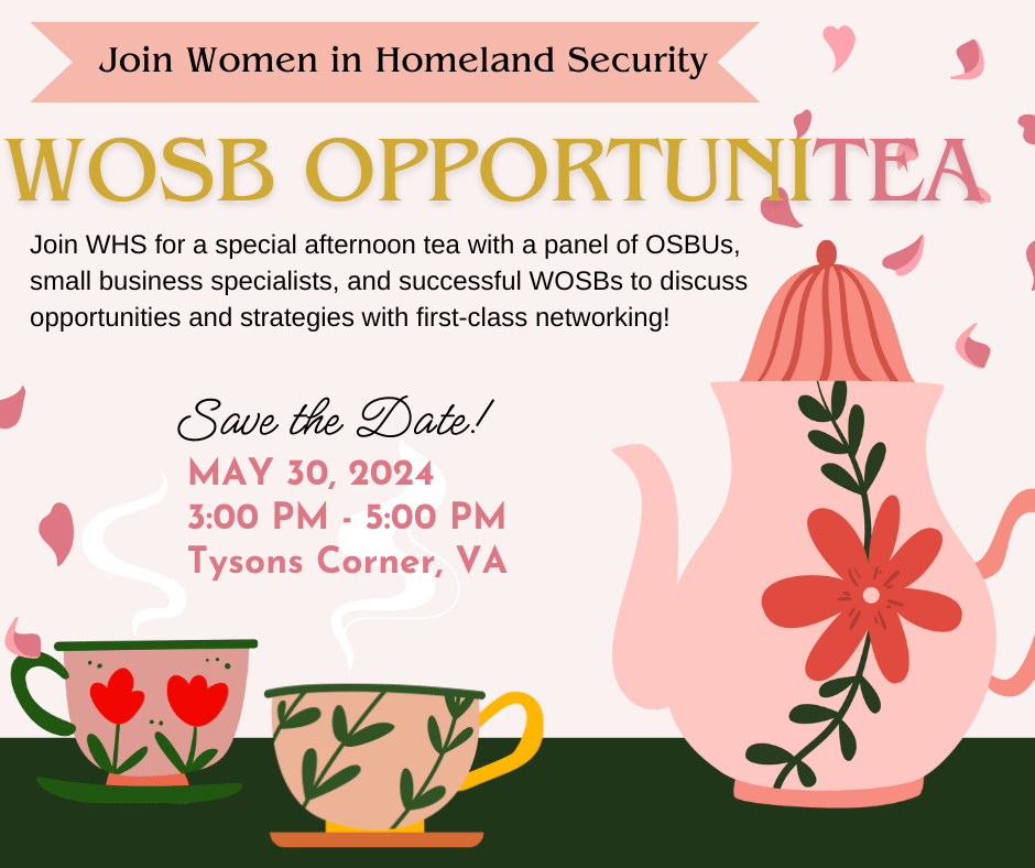 Join Women in Homeland Security for a special afternoon tea with a panel of OSDBUs, small business specialists, and successful WOSBs to discuss opportunities and strategies with first-class networking!